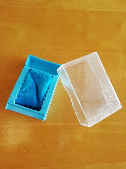 ターコイズのフェルトをはがし、中からモゴモゴ詰め物を取り出し、SOUSOUの和柄布を被せて完成。ちょっと中身に対して生地が少なかったようで、固めの仕上がり。まあ、かわいいから良しとしよう。